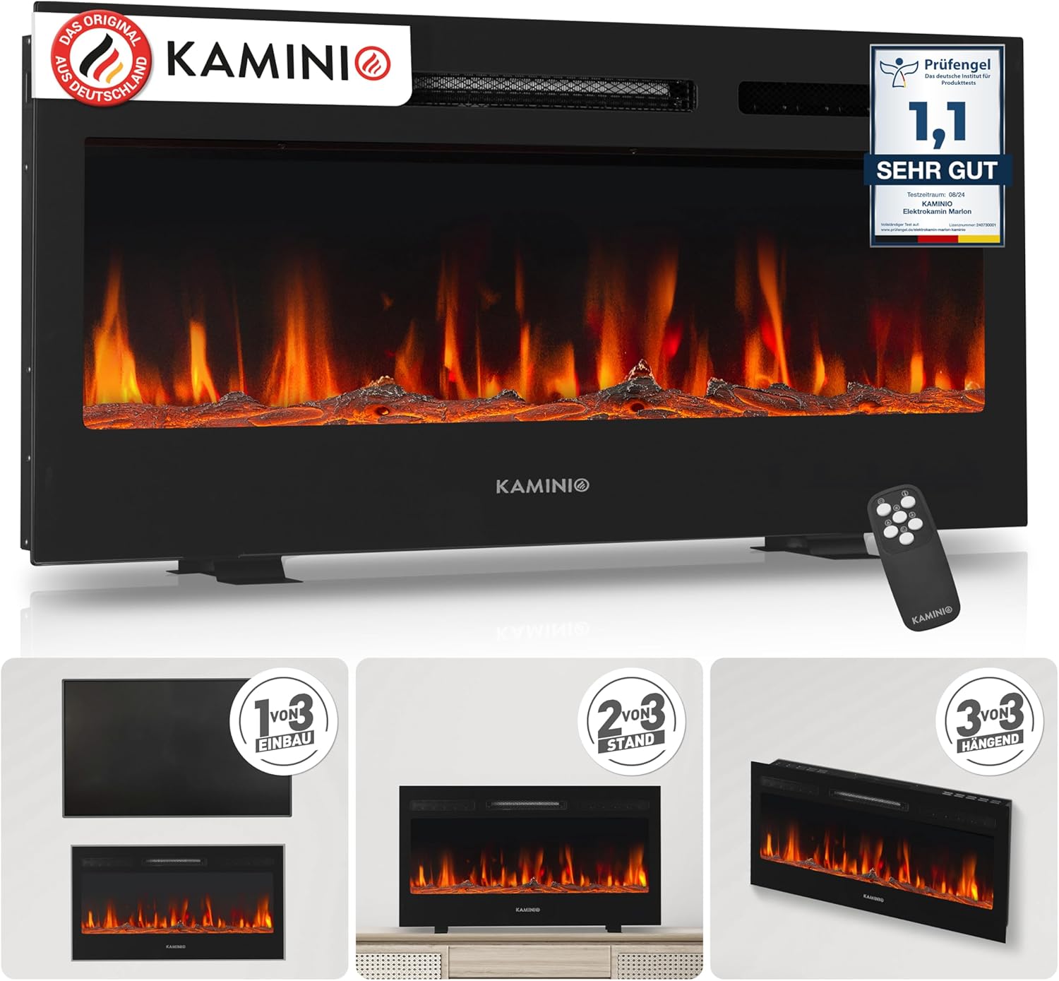 - Maximale Flexibilität: Drei Montagearten (Stand-, Wand- oder Einbaukamin) ermöglichen die passgenaue Integration in jede räumliche Gegebenheit.