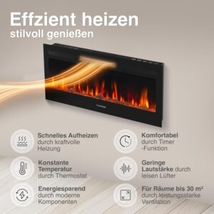 - Energiesparende LED-Technik: Der Stromverbrauch beschränkt sich bei reiner Flammendarstellung auf ein Minimum, was den Dauerbetrieb ohne hohen Kostenaufwand ermöglicht.