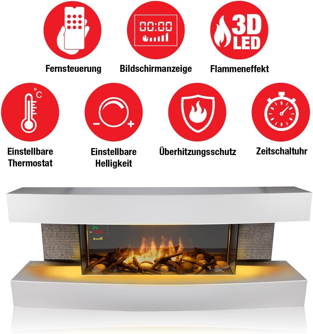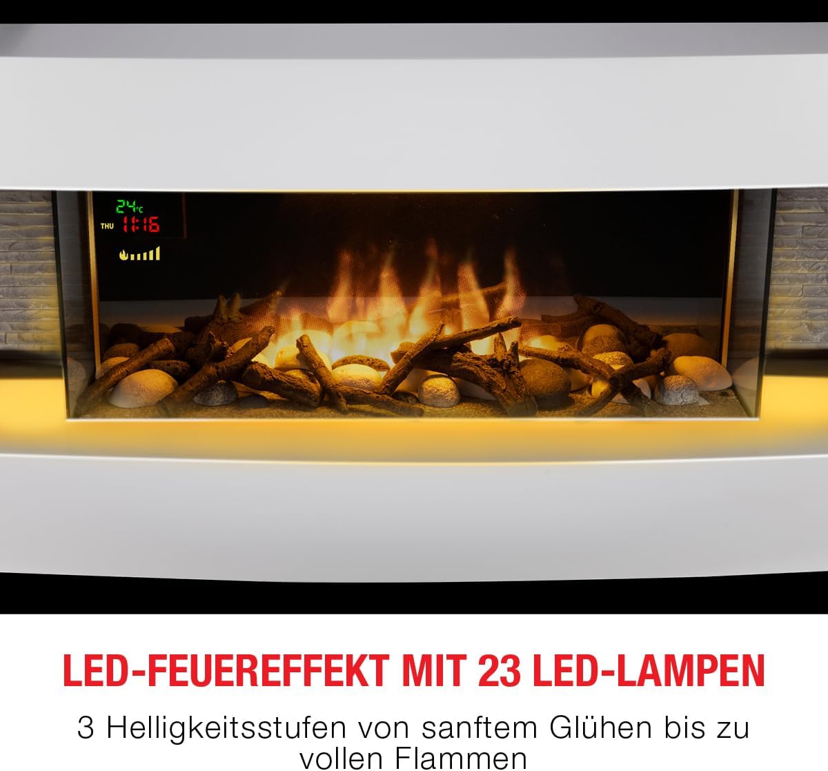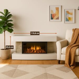 - Realistische Kaminatmosphäre: Die integrierte LED-Technik erzeugt einen lebendigen Flammeneffekt ohne Brandgefahr oder Rußentwicklung.