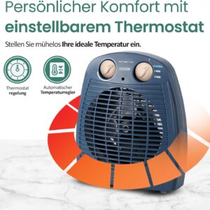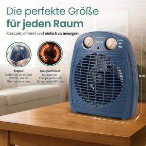 - Flexible Leistungsstufen: Mit zwei Heizstufen und der Ventilatorfunktion passt du die Wärmeabgabe präzise an die Umgebung an – von der schnellen Aufheizung bis zur reinen Luftzirkulation.