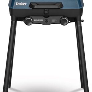 Enders Camping Gasgrill Explorer II, Grill-Thermometer, Grillen-, Kochen-, Backen Funktion, 2 Brenner Edelstahl, kleiner Balkon-Picknick-Grill, Aluguss-Grillwanne #2104, Blau