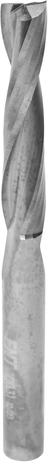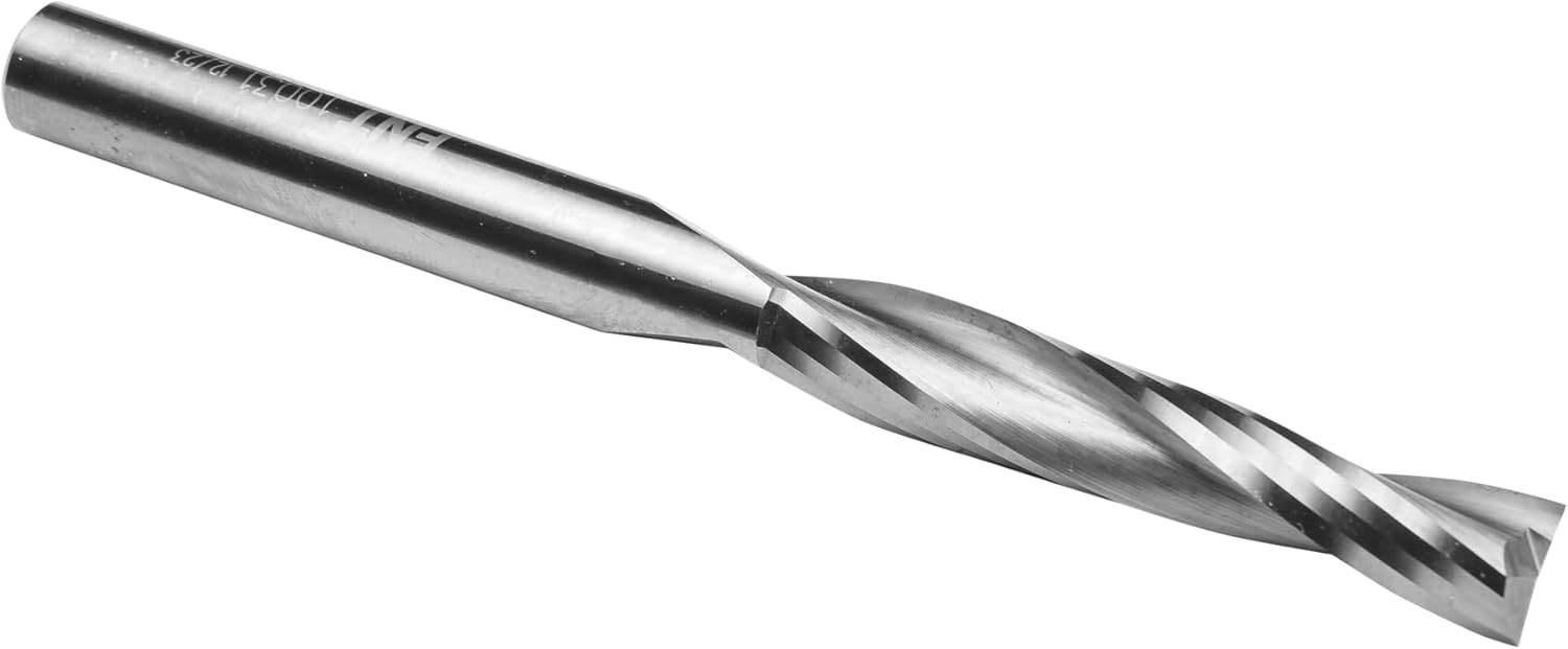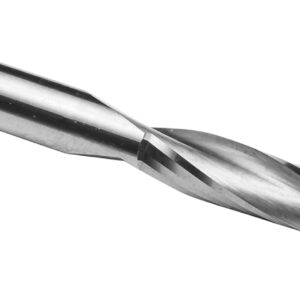 - Fräser mit geschliffener Spirale zum besseren Spanauswurf. Durch die spiralförmig geschliffene Schneide arbeitet der Fräser mit ziehendem Schnitt. Dadurch entsteht eine saubere Fräskante, ebenso kann mit weniger Druck auf das Werkzeug gearbeitet werden was gleichzeitig die Bruchgefahr verringert. Größere Frästiefen werden in zwei Arbeitsgängen gefräst.