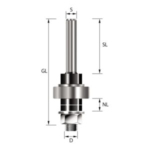Der Aufnahmedorn von ENT weist einen standardisierten Schaft (S) mit einem Durchmesser von 8 mm auf. Diese Größe sorgt für eine stabile und sichere Passung in gängigen Oberfräsen.