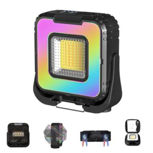 ERAY Tragbare Arbeitsleuchte - Zweiseitige Beleuchtung 1000 Lumen mit RGB Licht, LED Baustrahler Akku 5000mAh, 8 Modi, IPX4 Wasserschutz & Magnetfuß für Autoreparatur, Baustelle, Camping, Notfall