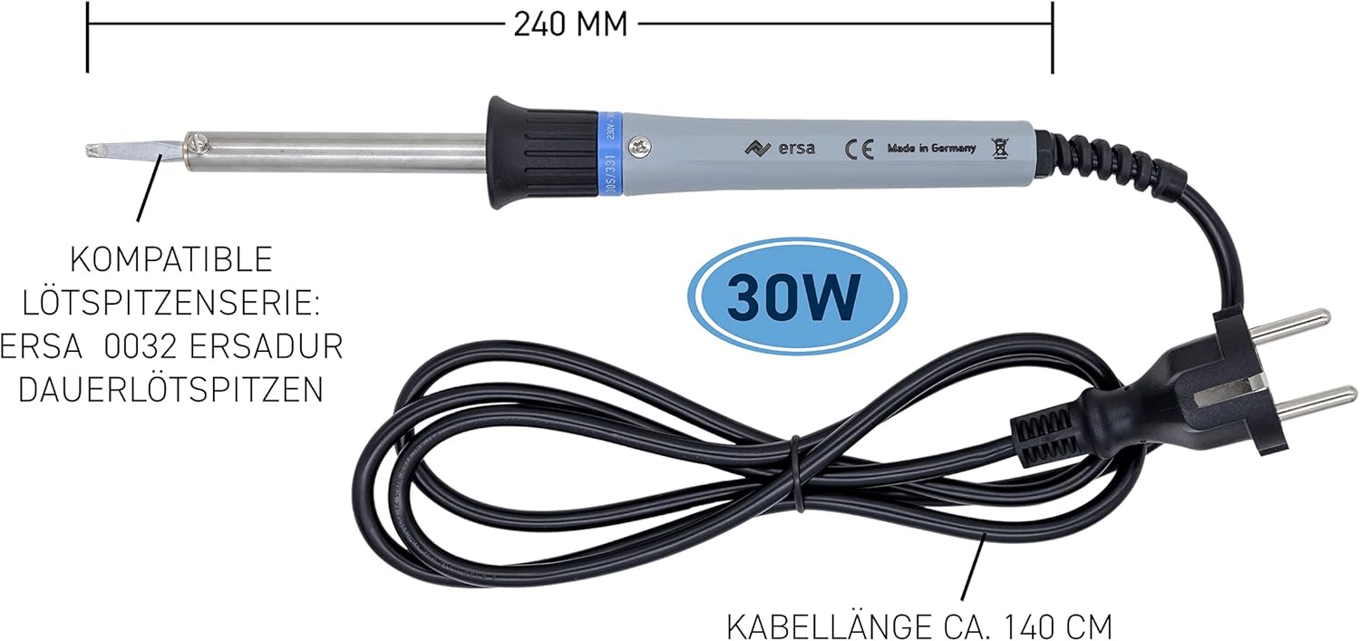 - Produkt 1: Der meistgekaufte, millionenfach bewährte Universallötkolben ERSA 30 S ist weltweit für seine Robustheit und Langlebigkeit bekannt