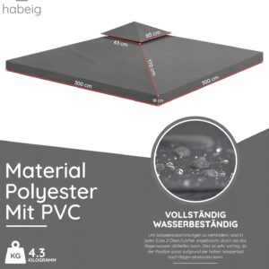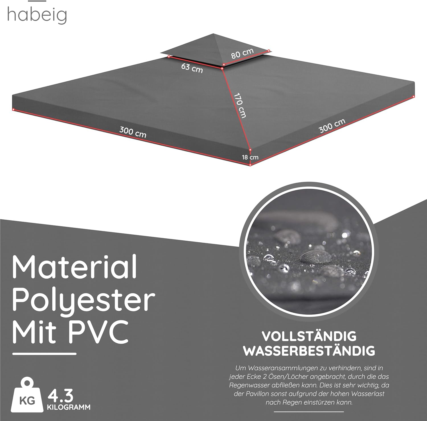 Dieses Ersatzdach ist die ideale Lösung für Hausbesitzer und leidenschaftliche Gartenbesitzer, die ihren Pavillon für extreme Witterungsbedingungen aufrüsten möchten. Mit einer spezialisierten PVC-Beschichtung bietet es maximalen Schutz vor Regen und UV-Strahlung für 3x3m Pavillonkonstruktionen.