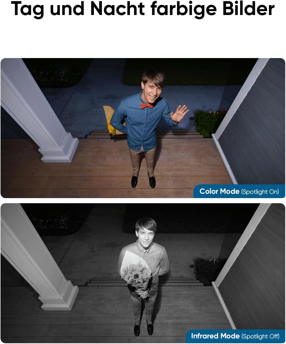 • Scharfe Nachtsicht: Die Sensorik liefert auch bei schwierigen Lichtverhältnissen klare Kontraste, damit man auf dem Videomaterial erkennt, wer sich auf dem Grundstück bewegt.