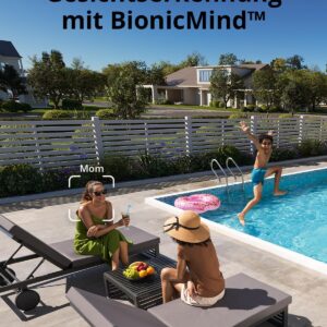 - Smarte BionicMind KI: Die selbstlernende KI erkennt Gesichter, Fahrzeuge und Objekte mit einer Genauigkeit von 99,9%, was Fehlalarme durch Tiere oder Vegetation minimiert.