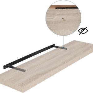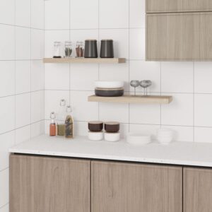 Jedes der beiden Wandregale aus dem Set hat eine Größe von 80 x 22,9 x 3,8 cm. Mit diesem Format bieten sie eine großzügige Ablagefläche für Ihre Ausstellungswaren wie Vasen, CDs oder Gewürze.