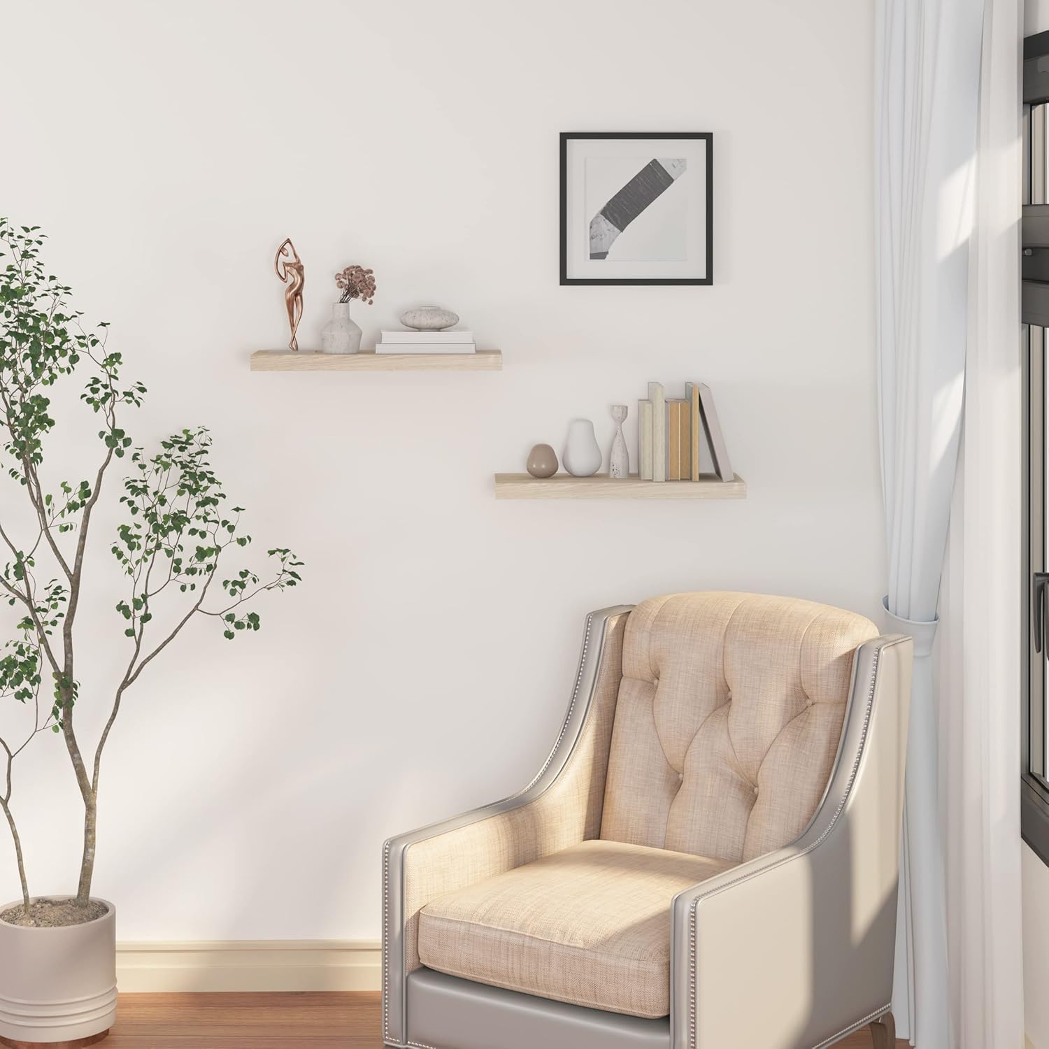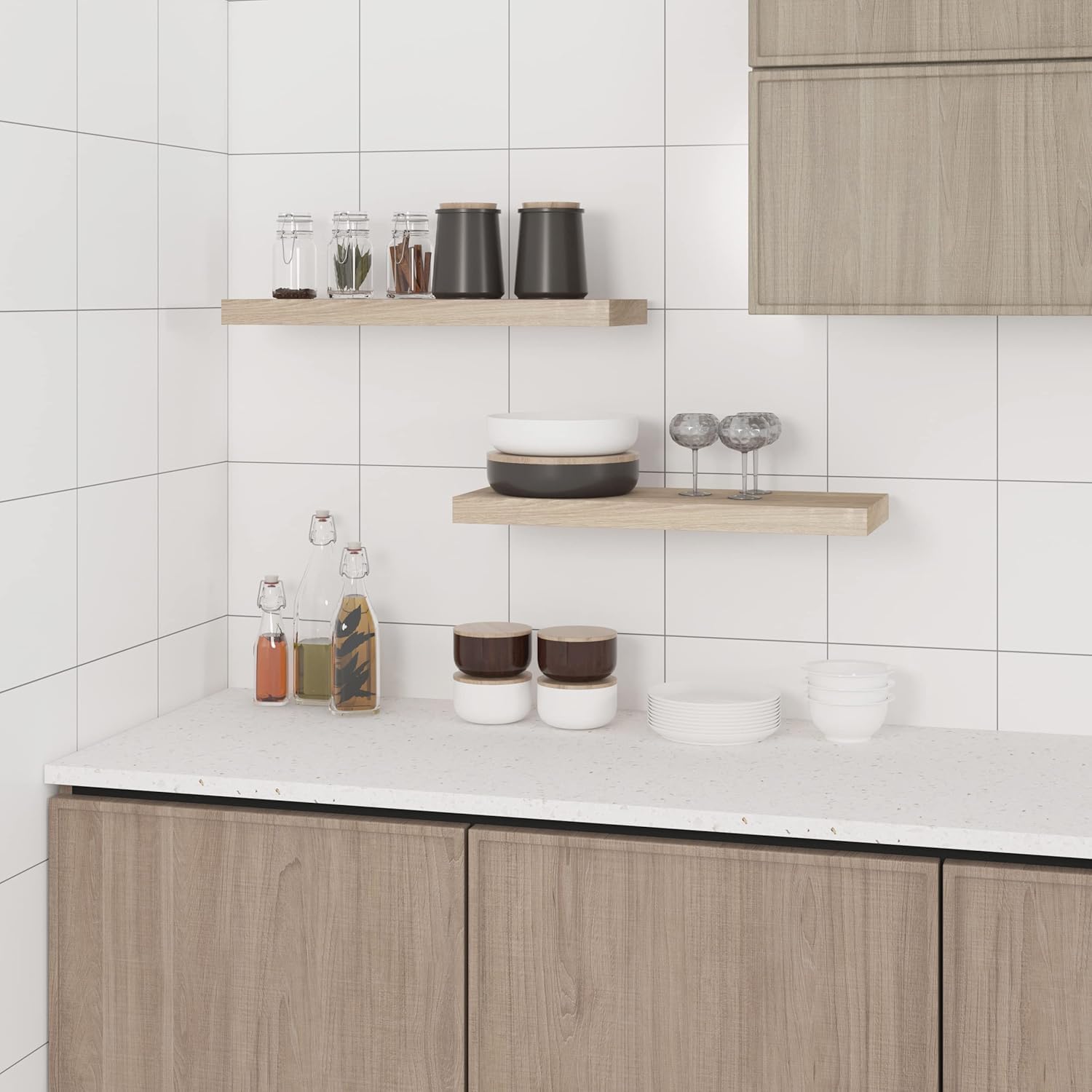 Aufgrund ihres funktionalen Designs sind die Regale vielseitig einsetzbar, etwa im Wohnzimmer, Schlafzimmer, Büro oder im Flur. Sie eignen sich hervorragend als Dekoration über dem Fernseher oder Sofa sowie als praktischer Stauraum in der Küche oder im Badezimmer.