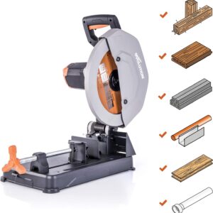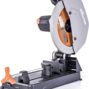 Wenn du die Evolution R355CPS Cut-off Saw das erste Mal auspackst, merkst du sofort: Hier wurde auf unnötigen Schnickschnack verzichtet. Das Design ist funktional, der Stahlfuß massiv genug, um auch bei größeren Stahlprofilen nicht zu kippeln. Der 2200W Motor zieht kraftvoll durch, wobei du den Vorschub dem Material anpassen solltest – drücke nicht mit Gewalt, lass das Blatt arbeiten, dann hält es auch deutlich länger.