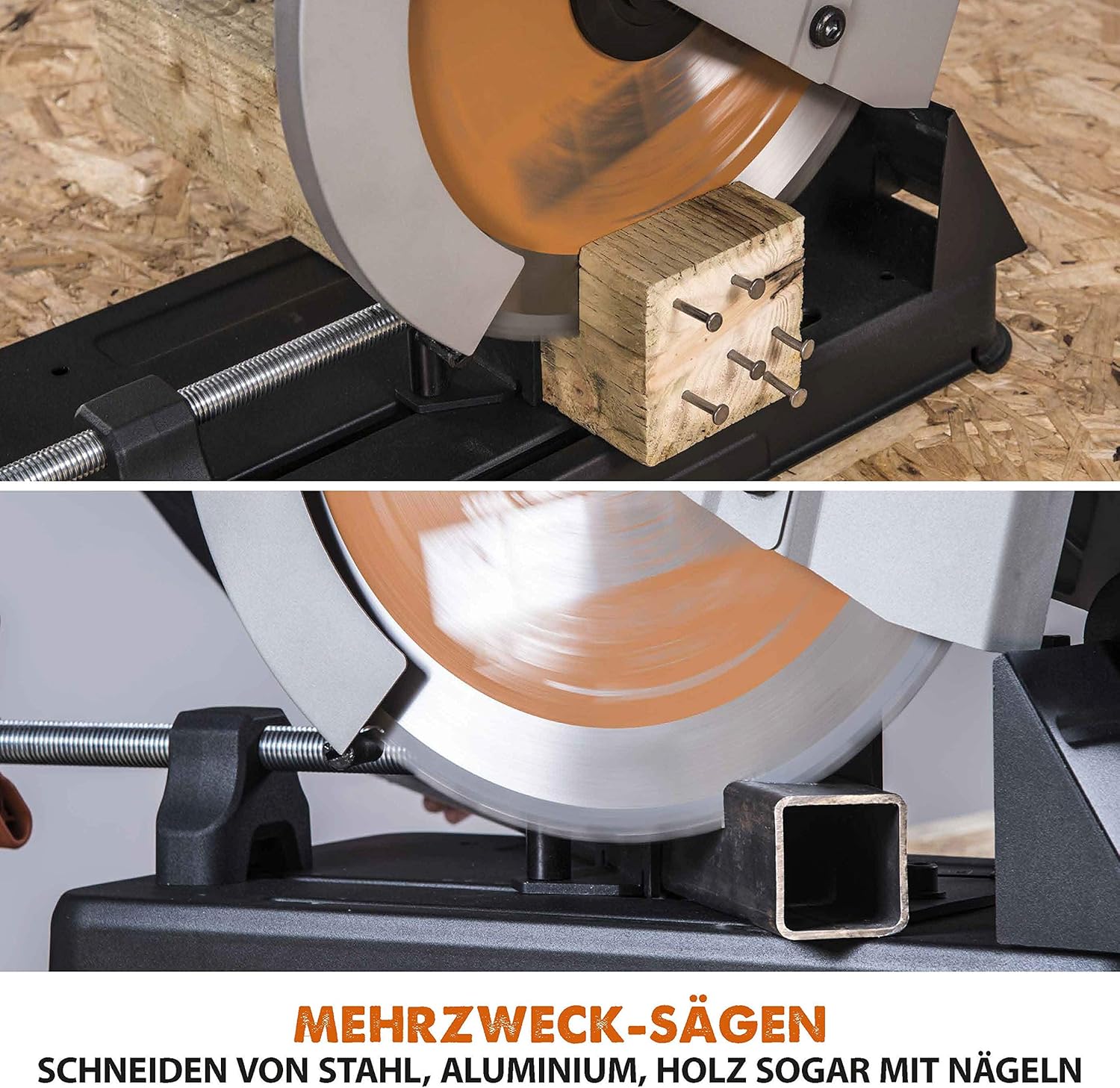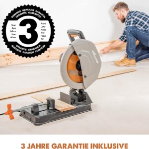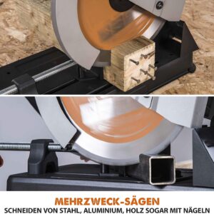 - Vielseitigkeit durch TCT-Technik: Das mitgelieferte 355 mm Mehrzweck-Sägeblatt schneidet Stahl, Aluminium und Holz gleichermaßen sauber, ohne dass Funkenflug wie bei Trennscheiben entsteht.