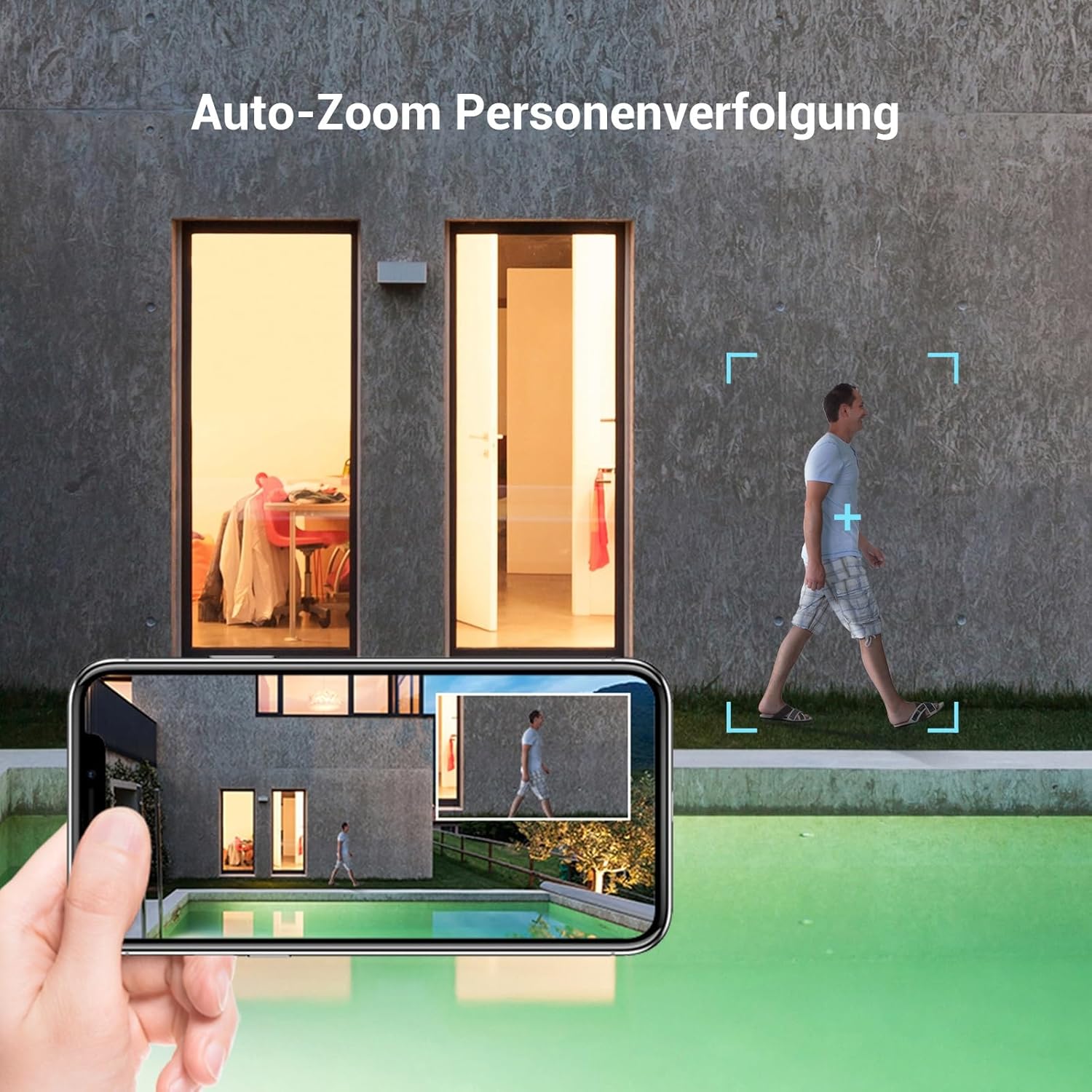 - Aktives Auto-Tracking: Sobald ein Ziel erkannt wird, schwenkt die Kamera automatisch mit, zoomt heran und verfolgt die Bewegung – ein entscheidender Vorteil, um Details wie Kennzeichen oder Gesichter festzuhalten.