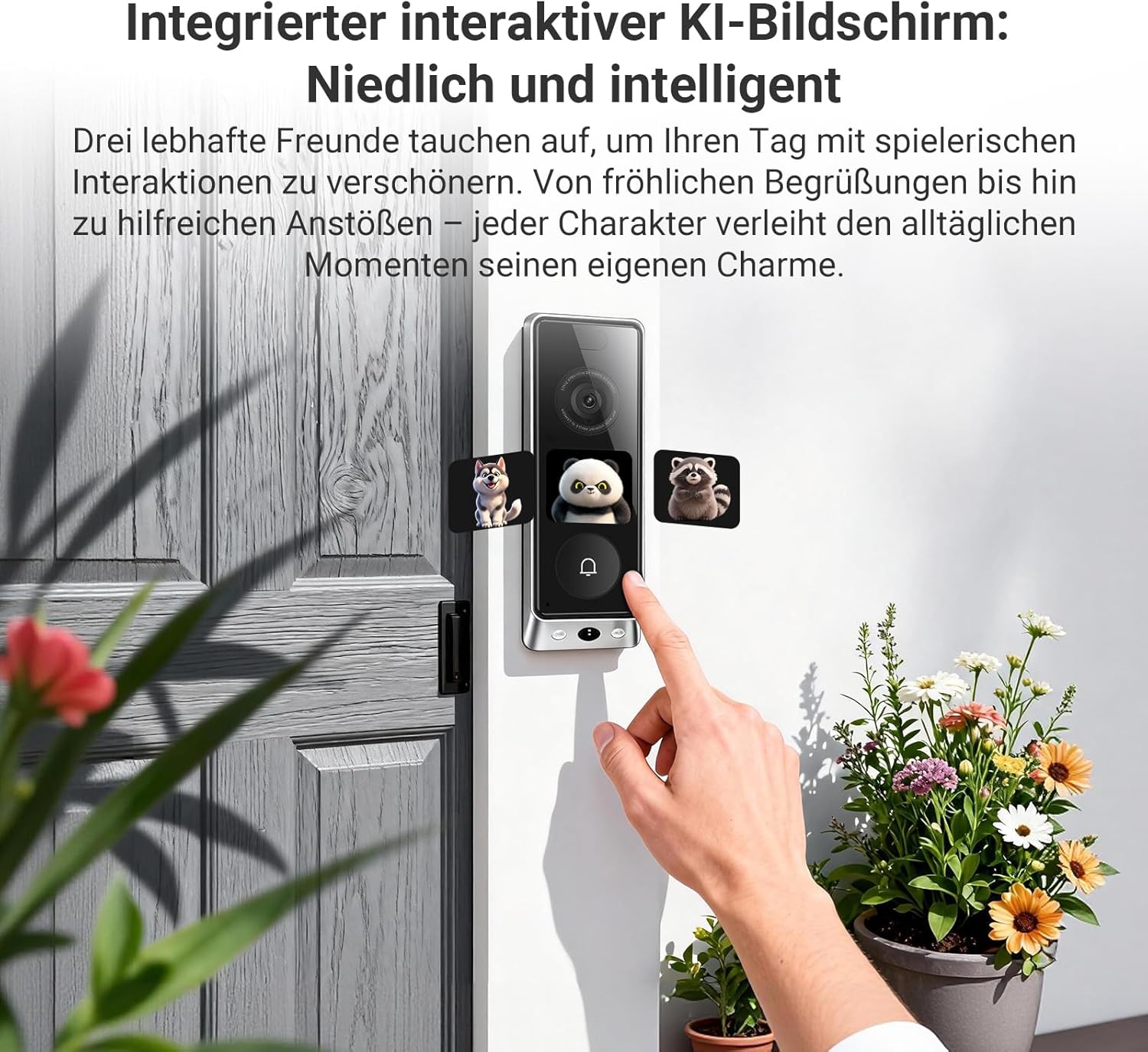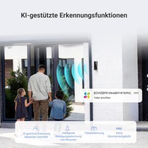 - KI-Erkennung und Voraufzeichnung & interaktiver Bildschirm: Der KI-Algorithmus unterscheidet zwischen Personen und Paketen und erkennt sogar bekannte Gesichter. Damit Ihnen kein Detail entgeht, erfasst die 7×24-Pre-Roll-Funktion die Sekunden vor der Erkennung und zeigt Ihnen das gesamte Ereignis. Darüber hinaus interagiert der Bildschirm mit Besuchern und verfügt über Zwei-Wege-Audio und automatische Sprachantworten