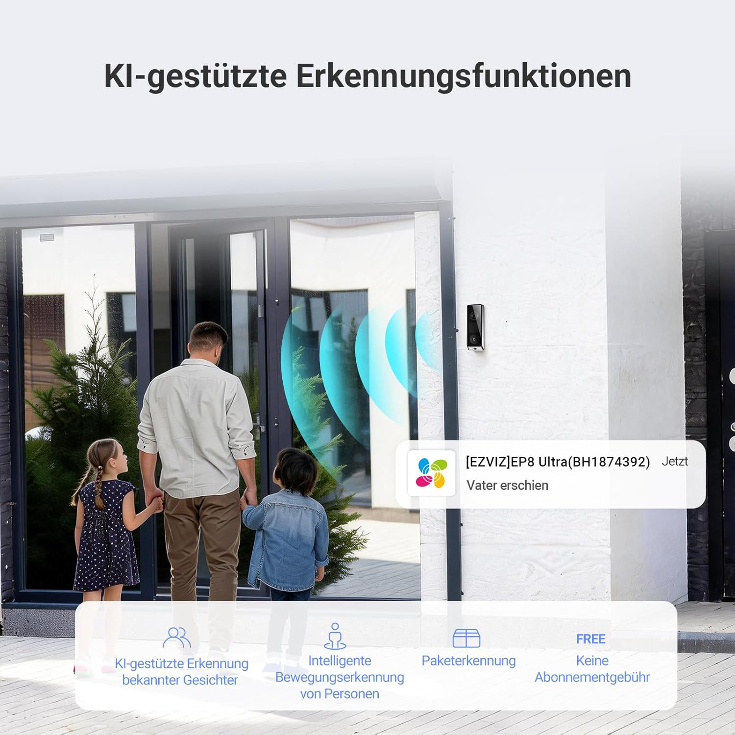 - Doppelte Linse 6 MP + 2 MP und Farb-Nachtsicht: Die drahtlose Außenklingel EP8 Ultra bietet eine vollständige Sicht ohne tote Winkel. Die 6-MP-Hauptkamera erfasst scharfe Details, während die untere 2-MP-Kamera Pakete auf dem Boden überwacht. Das System umfasst einen leistungsstarken Scheinwerfer für Farb-Nachtsicht sowie True WDR- und Verzerrungskorrektur-Technologien, die unter allen Lichtverhältnissen klare und natürliche Bilder garantieren
