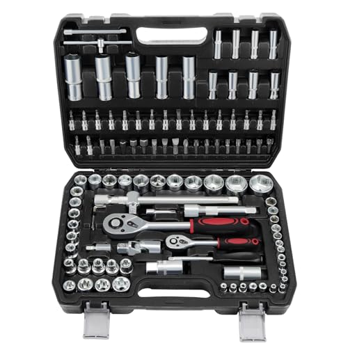 Faankiton 108TLG Steckschlüsselsatz, Ratschenkasten 1/2" 1/4" Zoll Steckschlüssel und Bitsatz Ratschen Set, Steckschlüssel Set, Ratschen- und Steckschlüssel-Set Knarrenkasten Ratschenkasten Nusskasten