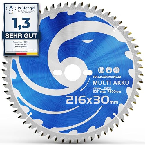 FALKENWALD® Kreissägeblatt 216×30 mm (Akku) Sägeblatt für Kappsäge, Tischkreissäge und Handkreissäge – Sägeblatt 216 mm (Multi) – Kompatibel mit Bosch Tischkreissäge GTS 635-216, Bosch PCM 8