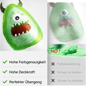 Die Fantastory Acrylfarben zeichnen sich durch eine außergewöhnlich hohe Pigmentkonzentration aus, die für eine beeindruckende Farbbrillanz sorgt. Dank der hervorragenden Pigmentablagerung entstehen besonders schimmernde Metallic-Töne mit einer ausgezeichneten Deckkraft auf verschiedenen Oberflächen.