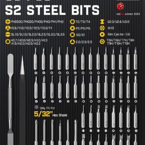 - Umfassendes 50-teiliges S2-Bit-Set: Die Bits aus gehärtetem S2-Stahl decken nahezu alle gängigen Schraubprofile ab, sodass du für jede Reparatur sofort das passende Werkzeug griffbereit hast.