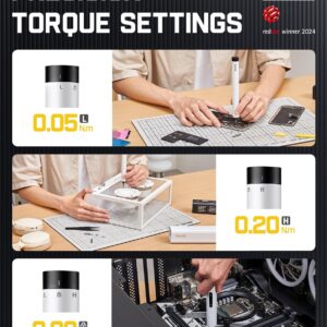 - Präzise Drehmomentsteuerung: Mit zwei elektrischen Stufen (0,05 Nm & 0,2 Nm) plus manuellem Modus bis zu 3 Nm verhinderst du effektiv das Überdrehen empfindlicher Gewinde in Kleinstgeräten.