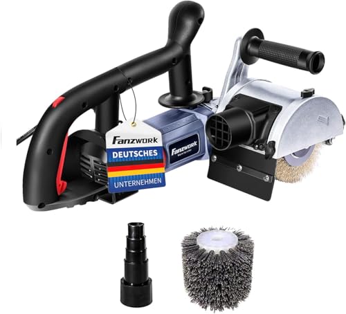 FANZWORK V2 1500 Watt Satiniermaschine Schleifmaschine Bürstenschleifgerät zur Renovierung von Oberflächen, mit Staubsaugung-Anschluss, Drehzahlregelung, Kugelgriff, Stahldraht & Nylon Bürste