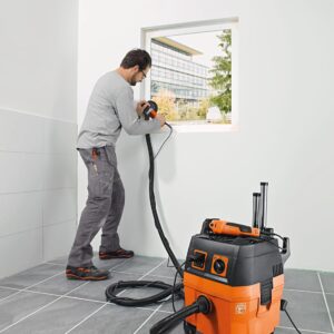 - Direkte Werkzeuganbindung: Der Sauger ist speziell für das Zusammenspiel mit Elektrowerkzeugen konzipiert, wodurch Staub bereits bei der Entstehung direkt an der Quelle abgesaugt wird.