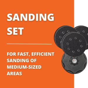 Dieses Schleifset ist ideal für das schnelle und wirtschaftliche Schleifen von mittleren Flächen konzipiert. Es dient als effiziente Alternative zum Exzenter- oder Schwingschleifer und ermöglicht durch seine Spezialform ein präzises Arbeiten.