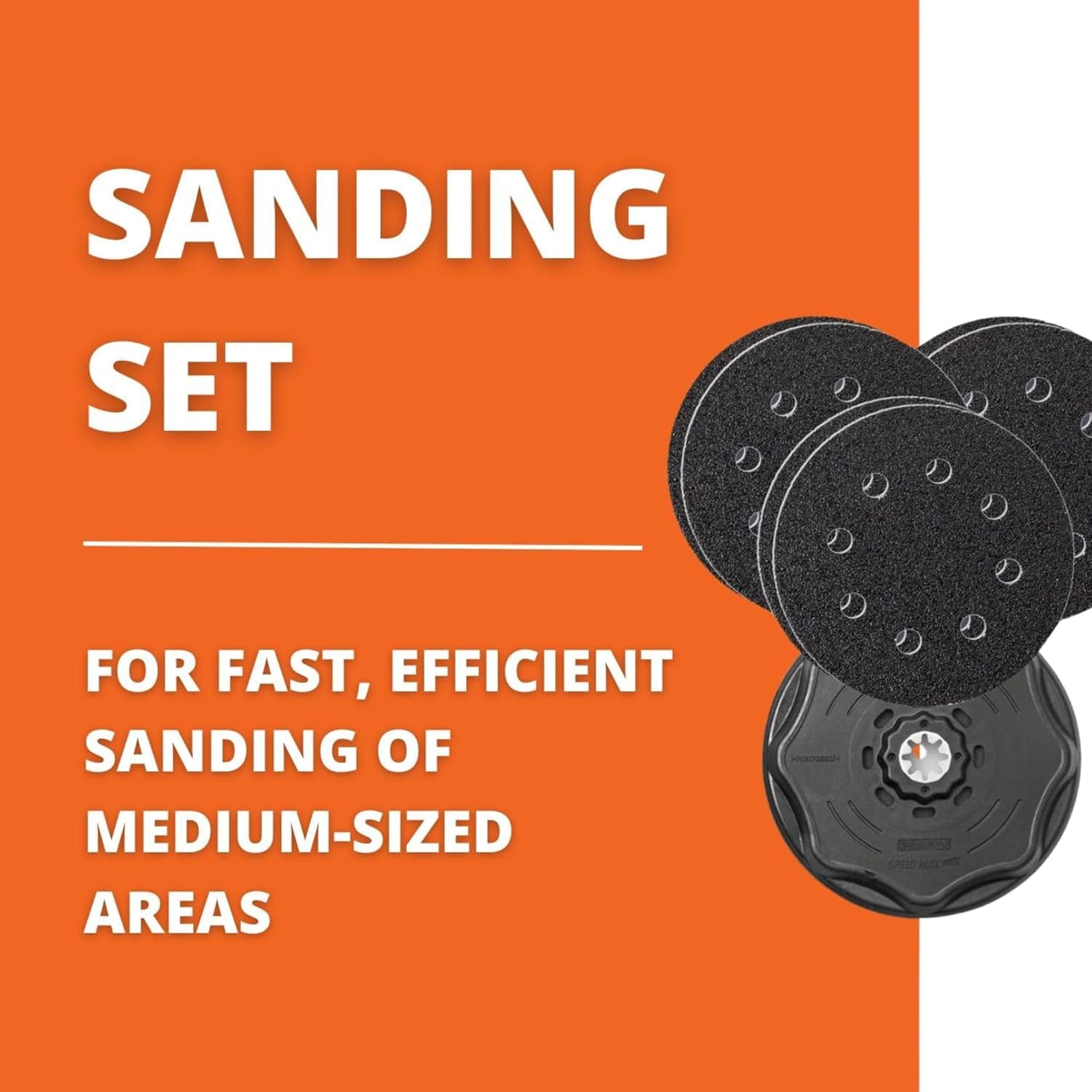 Fein Schleifset (runde Form, Aufnahme Starlock Plus, gelochte Ausführung, 1x Schleifteller, Je 2X Schleifblätter Korn 60, 80, 180) 63806195210