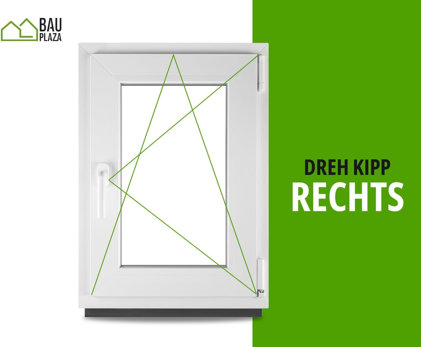 Das Fenster ist mit einer praktischen Dreh-Kipp-Funktion ausgestattet, die eine flexible Nutzung ermöglicht. Diese Funktion erlaubt sowohl das vollständige Öffnen für eine schnelle Belüftung als auch das einfache Ankippen für einen kontinuierlichen Luftaustausch, ideal für den dauerhaften Einsatz in unterschiedlichen Wohn- und Nutzbereichen.