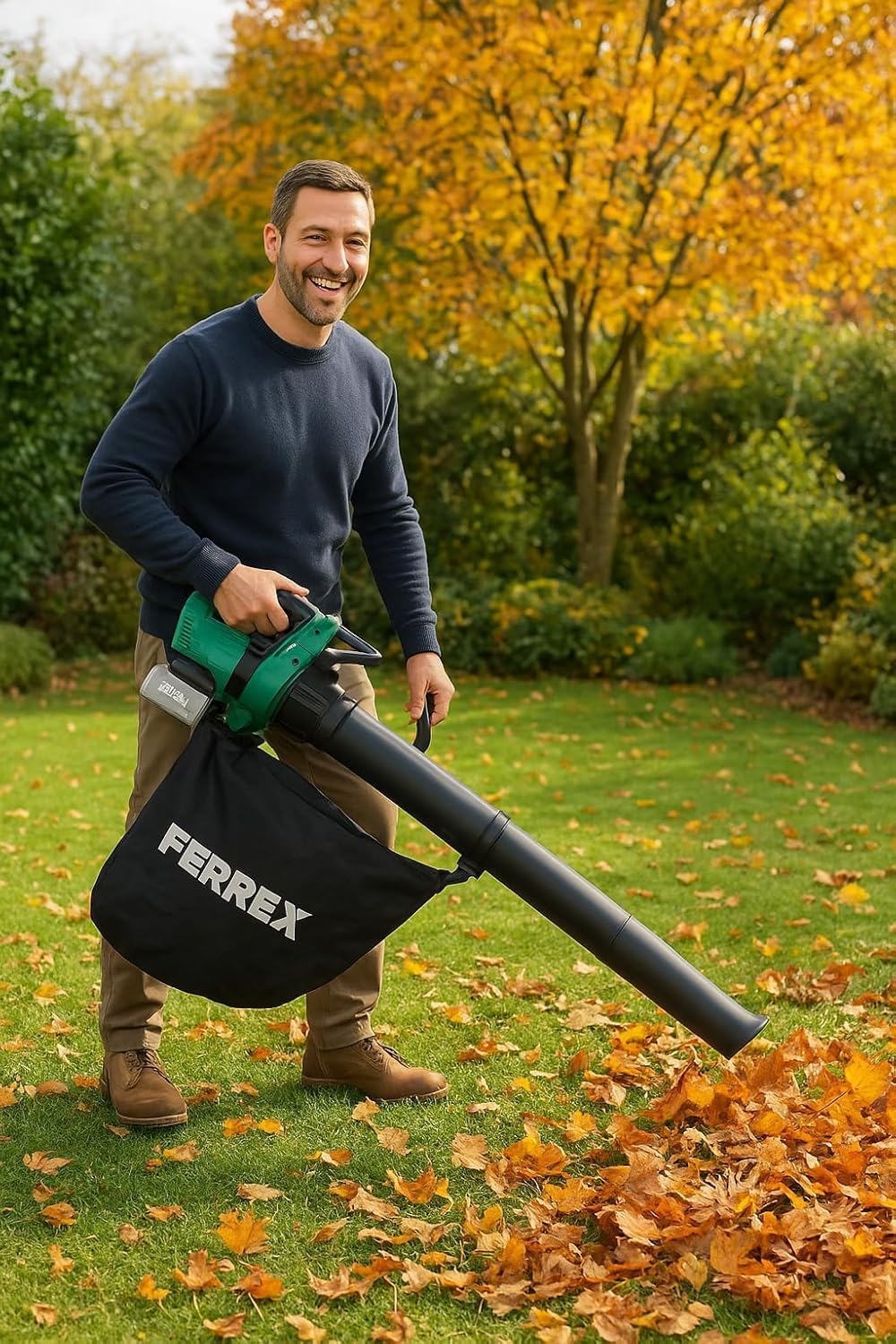 Der Ferrex 40V Akku-Laubsauger & Laubbläser ist die ideale Lösung für die Gartenarbeit im Herbst. Mit seinen drei Funktionen – Blasen, Saugen und Zerkleinern – sorgt er für saubere Wege, Terrassen und Rasenflächen. Dank einer Blasgeschwindigkeit von bis zu 210 km/h und einer Saugleistung von 570 m³/h wird selbst nasses oder hartnäckiges Laub mühelos entfernt. Das integrierte Zerkleinerungssystem reduziert das Laub im Verhältnis 15:1, wodurch deutlich weniger Abfallvolumen entsteht. Der ca. 45 L