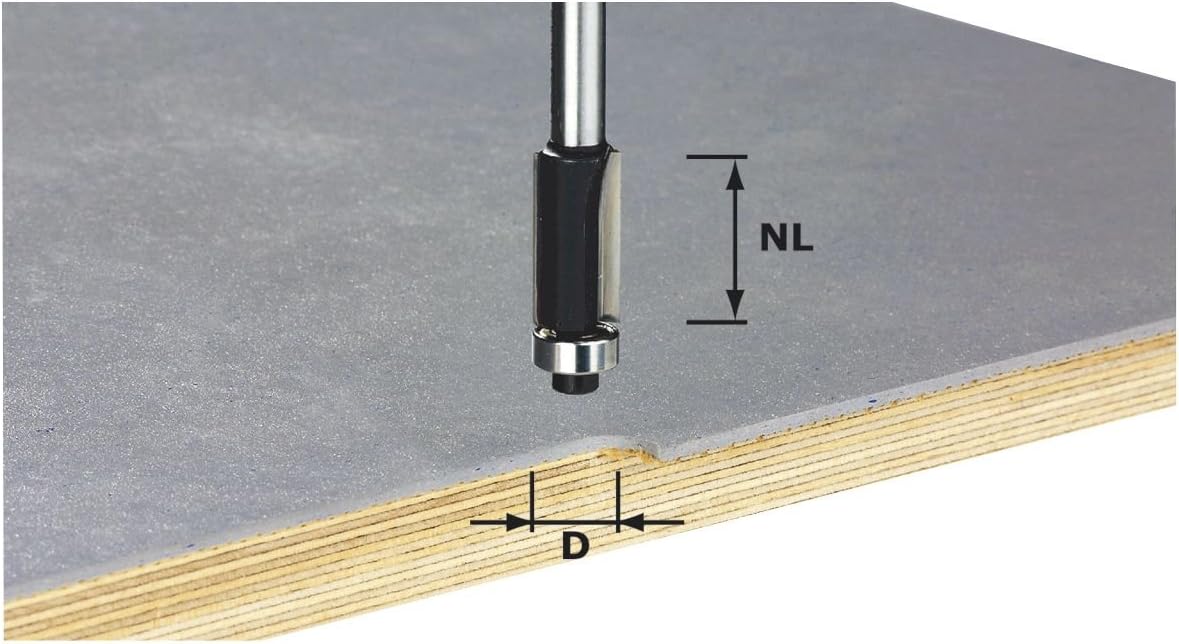Der Festool Bündigfräser HW S8 D12,7/NL25 ist auf Effizienz und Langlebigkeit ausgelegt. Mit einem Schaftdurchmesser von 8 mm passt er in alle gängigen Oberfräsen, die eine entsprechende Spannzange besitzen. Die durchdachte Konstruktion mit dem unten liegenden Kugellager macht ihn zum Spezialisten für alle Arbeiten, bei denen eine vorhandene Kontur auf ein neues Werkstück übertragen werden soll. Das kompakte Lager ermöglicht dabei einen Mindestradius von 15 mm, was ihn von herkömmlichen, größeren Bündigfräsern abhebt.
