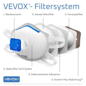 - EFFEKTIVSTE FILTRATION – Das innovative Mehrschicht Filtersystem unserer Atemschutzmaske ffp3 filtert mindestens 99% aller Partikel & Aerosole bis 0,6μm aus der Atemluft. Schützen Sie Ihre Gesundheit mit der modernsten Filtertechnologie!