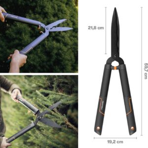 - Universelle Bedienung: Das symmetrische Design der Griffe macht die Heckenschere gleichermaßen für Rechts- als auch Linkshänder zur optimalen Wahl.