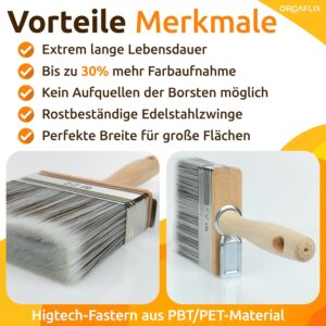 - Minimierter Borstenverlust: Durch modernste Einbindung der Fasern bleiben keine Borsten im frischen Anstrich kleben, was aufwendiges Nachschleifen erspart.