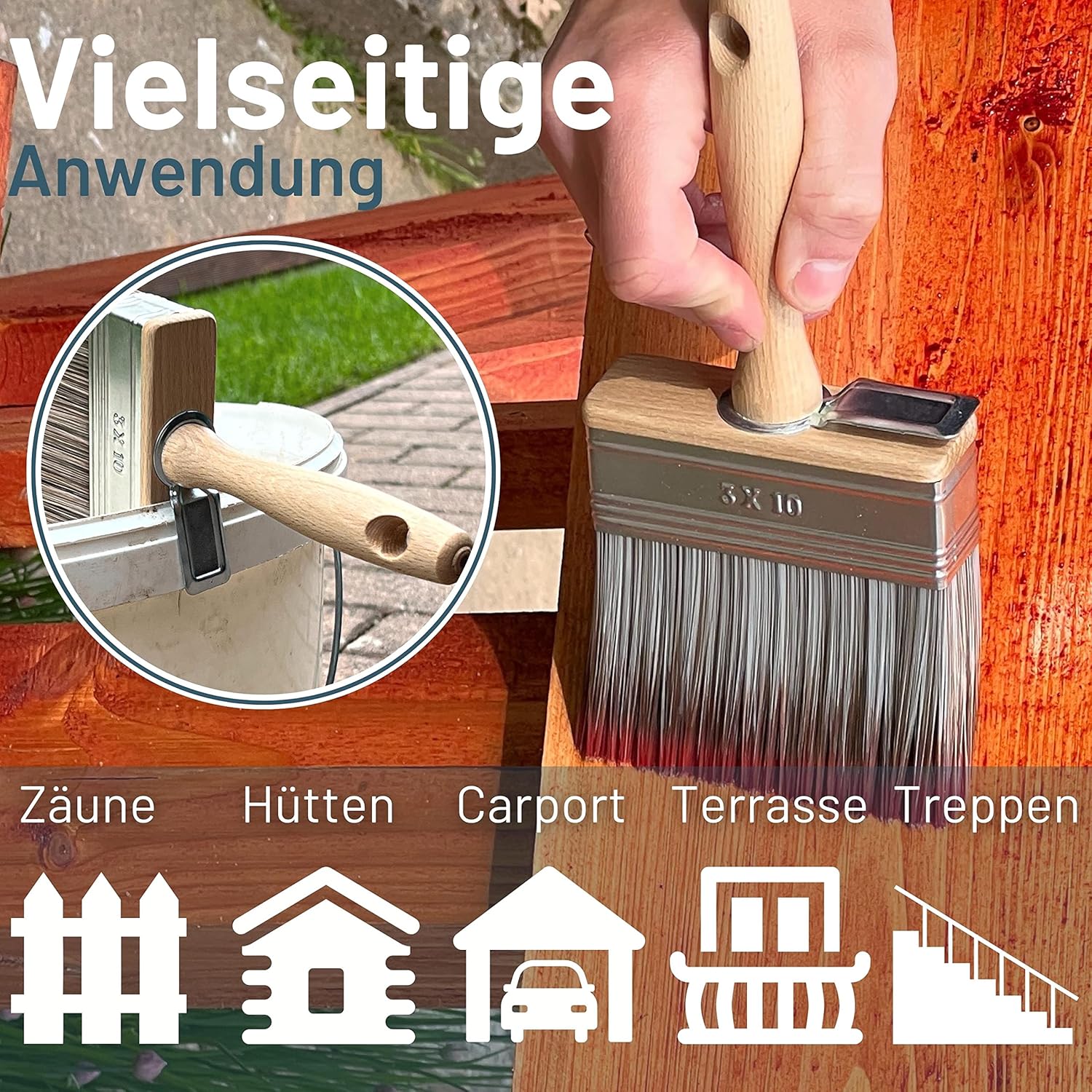 - Ergonomisches Arbeiten: Der Griff aus Buchenholz sorgt für eine ermüdungsfreie Haptik, selbst bei großflächigen Projekten wie Terrassen oder Carports.