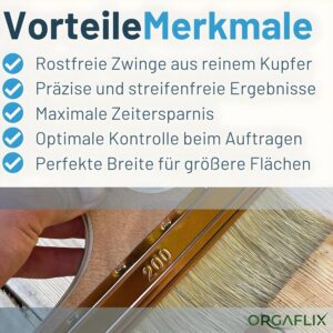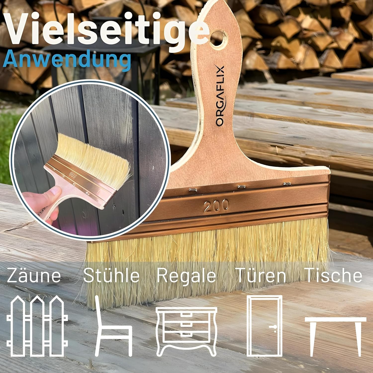 Ein Flächenstreicher ist ein breiter Pinsel, der speziell für den effizienten Farbauftrag auf großen, ebenen Flächen konzipiert ist. Mit einer Breite von 200 mm ermöglicht der ORGAFLIX Flächenstreicher XXL eine schnelle und gleichmäßige Bearbeitung von Wänden oder Bauteilen, was ihn für Heimwerker und Profis gleichermaßen nützlich macht.