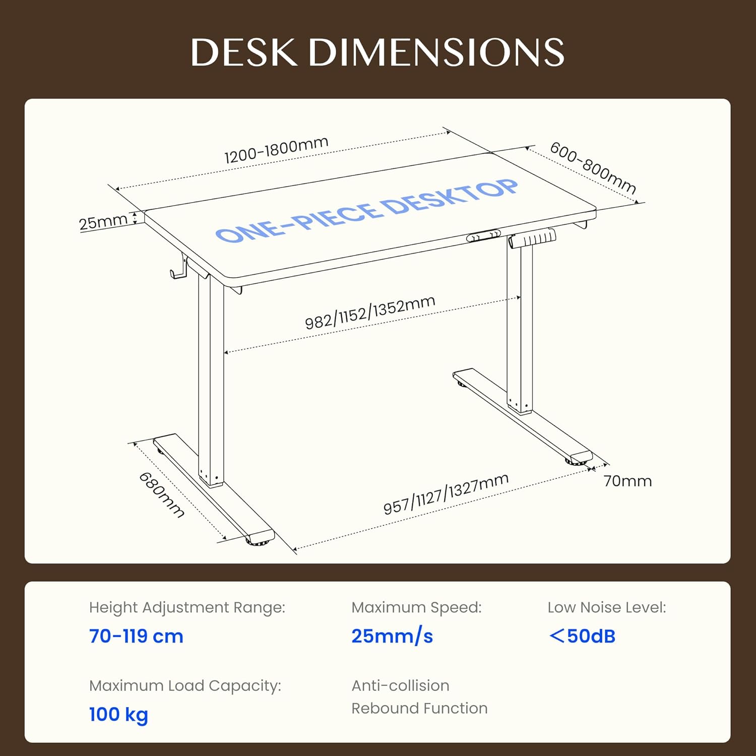 - Leistungsstarkes Doppelmotorensystem: Die zwei Motoren garantieren eine synchrone, ruckelfreie Höhenverstellung mit bis zu 25 mm/s, was mechanischen Verschleiß minimiert.