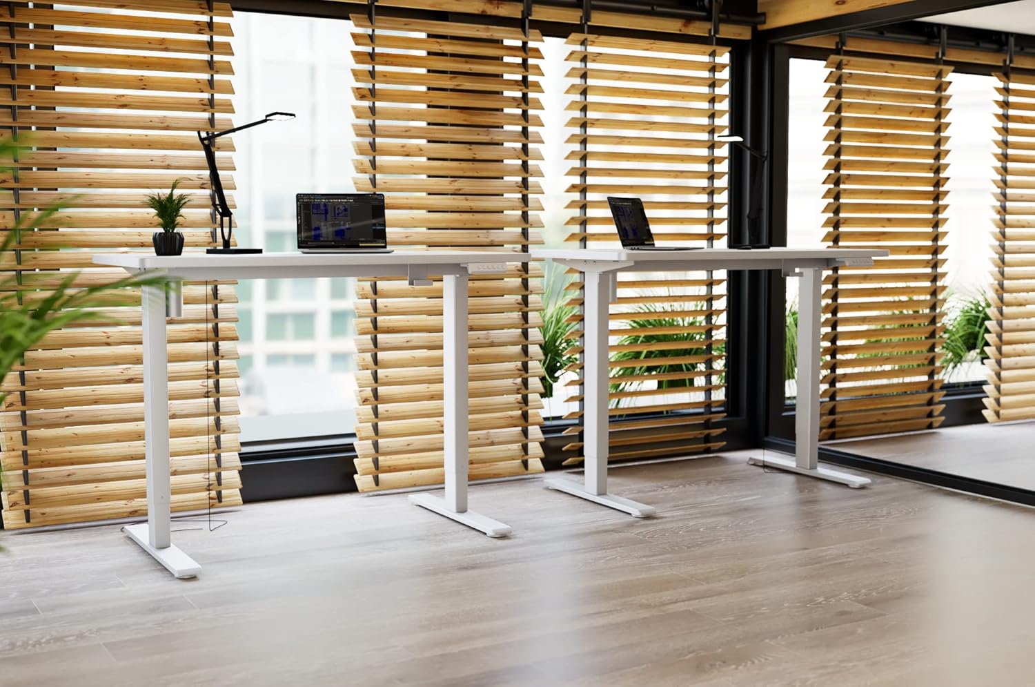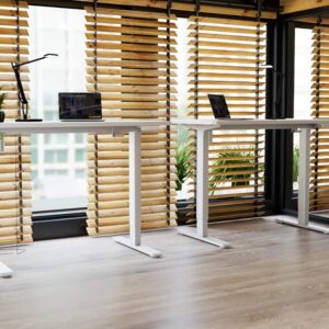 Die Stabilität wird bei diesen Modellen durch leistungsstarke Doppelmotoren gewährleistet, die eine effiziente und gleichmäßige Höhenverstellung ermöglichen. Dank einer hohen maximalen Belastbarkeit von 100 kg bietet der Tisch auch bei Nutzung mit mehreren Monitoren und schwerer Büroausstattung einen sicheren Stand. Jeder Schreibtisch durchläuft zudem umfassende Tests, um diese Stabilität im Alltag zu garantieren.