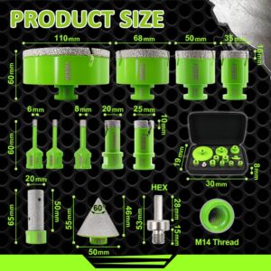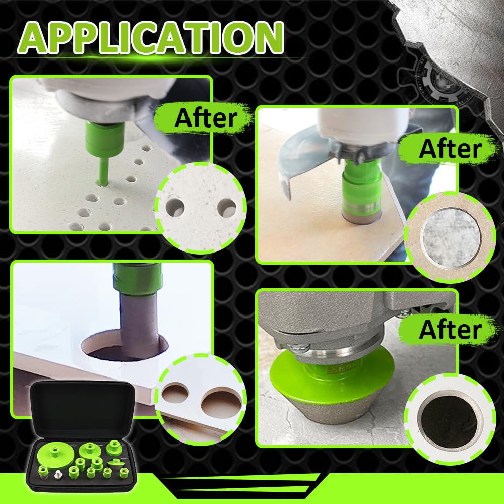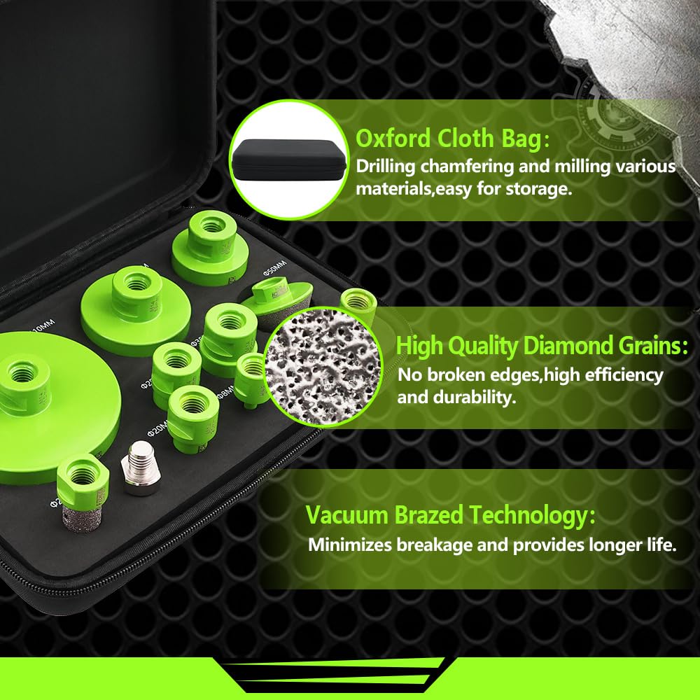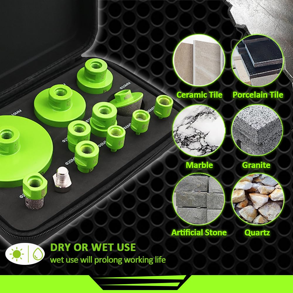 Dieses umfassende 12-teilige Diamant-Kernbohrer-Set ist die ideale Lösung für Fliesenleger, Sanitärinstallateure und anspruchsvolle Heimwerker, die präzise Bohrungen in harte Materialien vornehmen müssen. Es deckt mit seiner durchdachten Größenzusammenstellung alle Standardanforderungen für Wand- und Bodenbearbeitungen ab und ermöglicht sowohl saubere Bohrungen als auch effizientes Formen und Fasen.