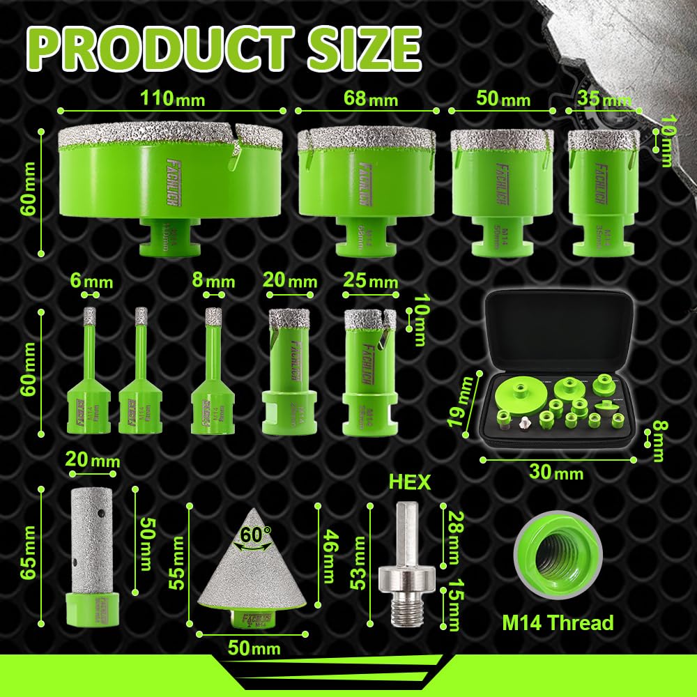 Produktbeschreibung für Fliesenlochsägen-Set – M14 Dia