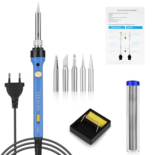 Flintronic Lötkolben Set, 60W LCD Lötkolben mit Ein/Aus Schalter, Einstellbar Temperatur 200-480°C, 10g Lötdraht 5 Lötspitzen, Entlötpumpe, Lötkolbenständer, Pinzette, Lötset für Elektrische Arbeiten