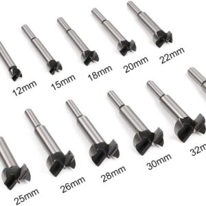 Das Set von Flintronic umfasst 12 verschiedene Forstnerbohrer mit Durchmessern von 10 mm, 12 mm, 15 mm, 18 mm, 20 mm, 22 mm, 25 mm, 26 mm, 28 mm, 30 mm, 32 mm und 35 mm. Dank dieser Vielfalt sind Sie für verschiedenste Bohrprojekte in Holz bestens ausgestattet.