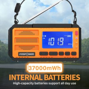 FosPower – Notfallradio NOAA/AM/FM mit 10000mAh Tragbare Powerbank – Aufladung per USB/Solar/Handkurbel, Batteriebetrieben, SOS-Alarm & Taschenlampe für Notfälle drinnen und draußen – FosPower
