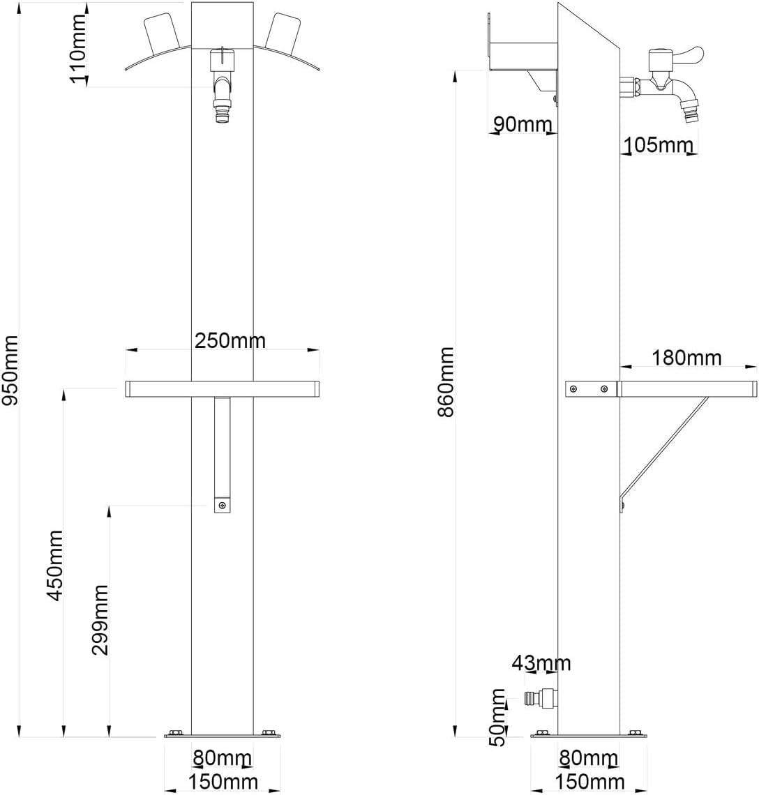 Die Wasserzapfsäule wird aus hochwertigem Edelstahl 316 gefertigt, das auch als Chrom-Nickel-Molybdän-Stahl bekannt ist. Dieses Material zeichnet sich durch seine besondere Robustheit sowie Langlebigkeit aus und verleiht der Säule ein elegantes Aussehen.