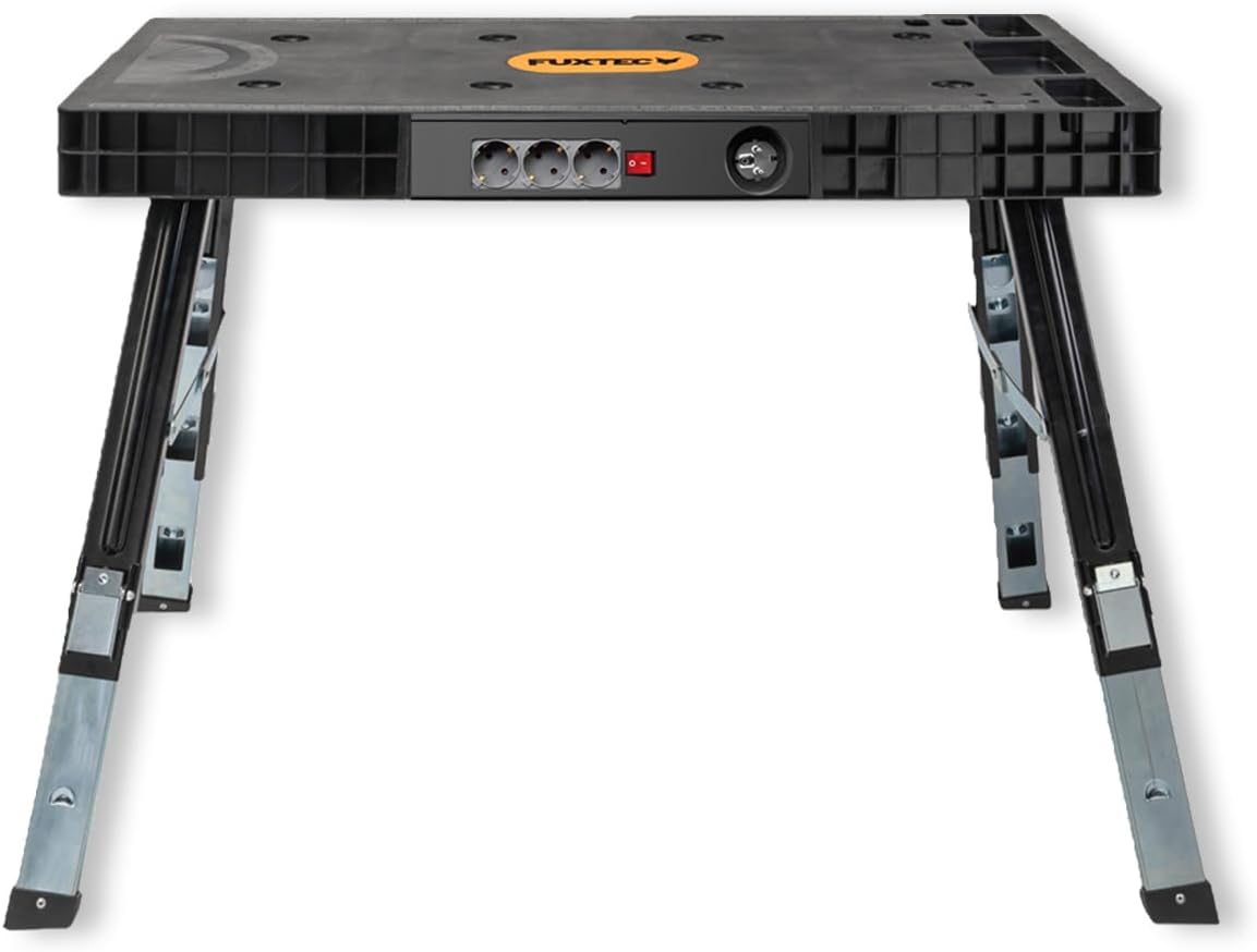 Eine 5in1 Werkbank wie das Modell von FUXTEC vereint fünf verschiedene Funktionen in einem Produkt, um verschiedenste Arbeiten zu erleichtern. Sie bietet unter anderem integrierte Messhilfen wie ein Lineal und einen Winkelmesser, eine praktische Stromleiste, eine Rollbrett-Funktion sowie ein Ablagesystem für Werkzeug. Dies macht sie zu einem vielseitigen Allrounder, der für unterschiedliche handwerkliche Aufgaben optimiert ist.