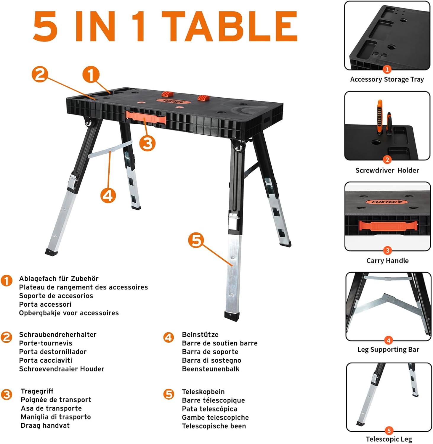 Produktbeschreibung für das Produkt FUXTEC klappbare 5in1 Universal-Werkbank FX-WB