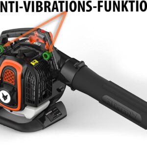 • Eine BESONDERHEIT des neuen semiprofessionellen Laubsauger-bläser ist die Anti Vibrations-Funktion. Durch den vom Griff entkoppelten Motor werden die Vibrationen im Gerät nochmal weiter reduziert! Somit ist das Laub saugen oder blasen beispielsweise noch einfacher geworden.