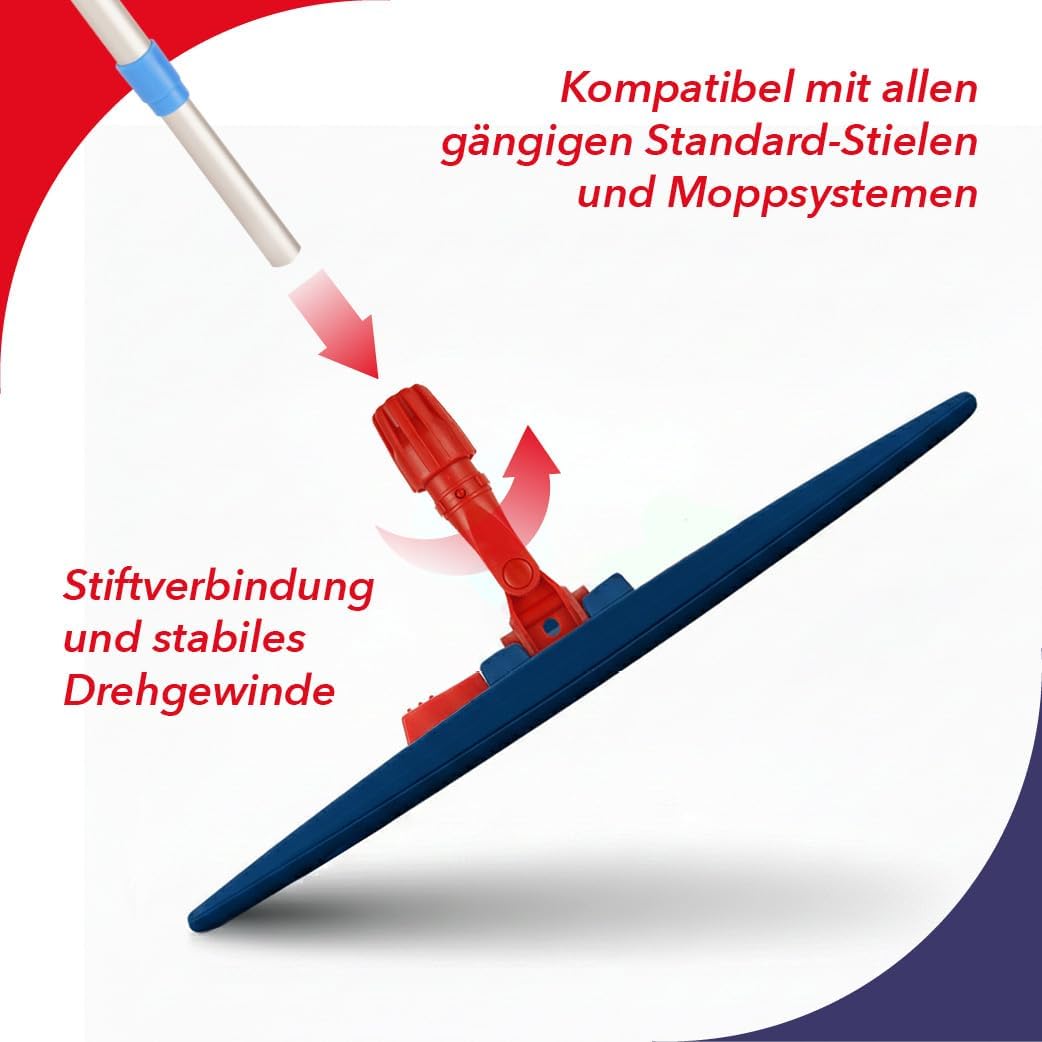 - Mopp-Wahl: Nutze bevorzugt Taschen- oder Laschenmopps, um die volle Kompatibilität des 50 cm Klapphalters sicherzustellen.