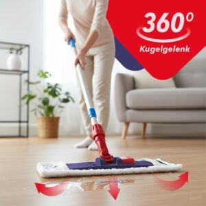 - Hohe Flexibilität: Das frei bewegliche Gelenk ermöglicht eine 360-Grad-Reinigung, mit der du problemlos unter Werkbänken, Maschinen und Regalen wischst.