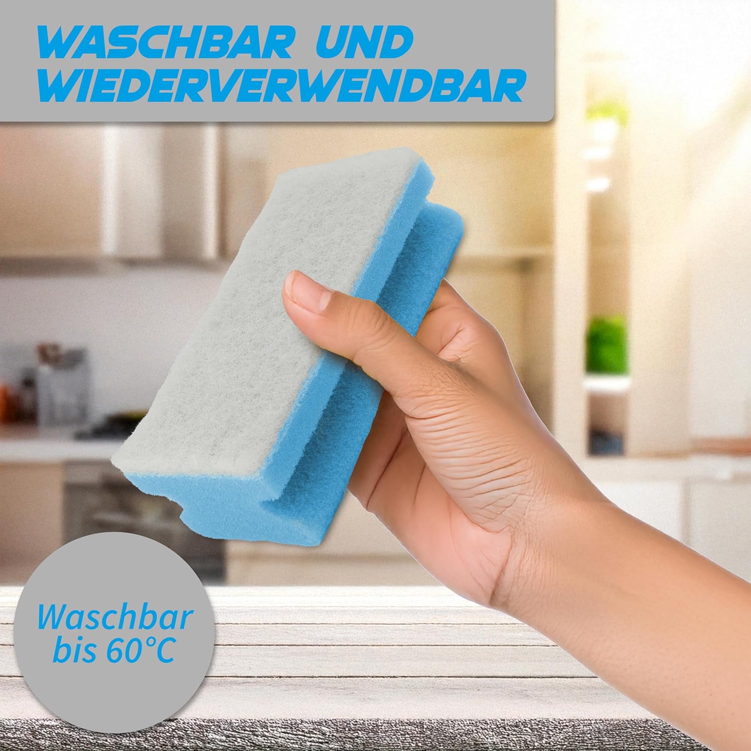 Die Schwämme sind besonders pflegeleicht, da sie bei Temperaturen von bis zu 60 °C in der Waschmaschine gereinigt werden können. Dies sorgt für eine hygienische Wiederverwendung nach der Nutzung im Haushalt oder Büro. Durch diese Waschbarkeit bleibt das Produkt lange einsatzbereit und nachhaltig.